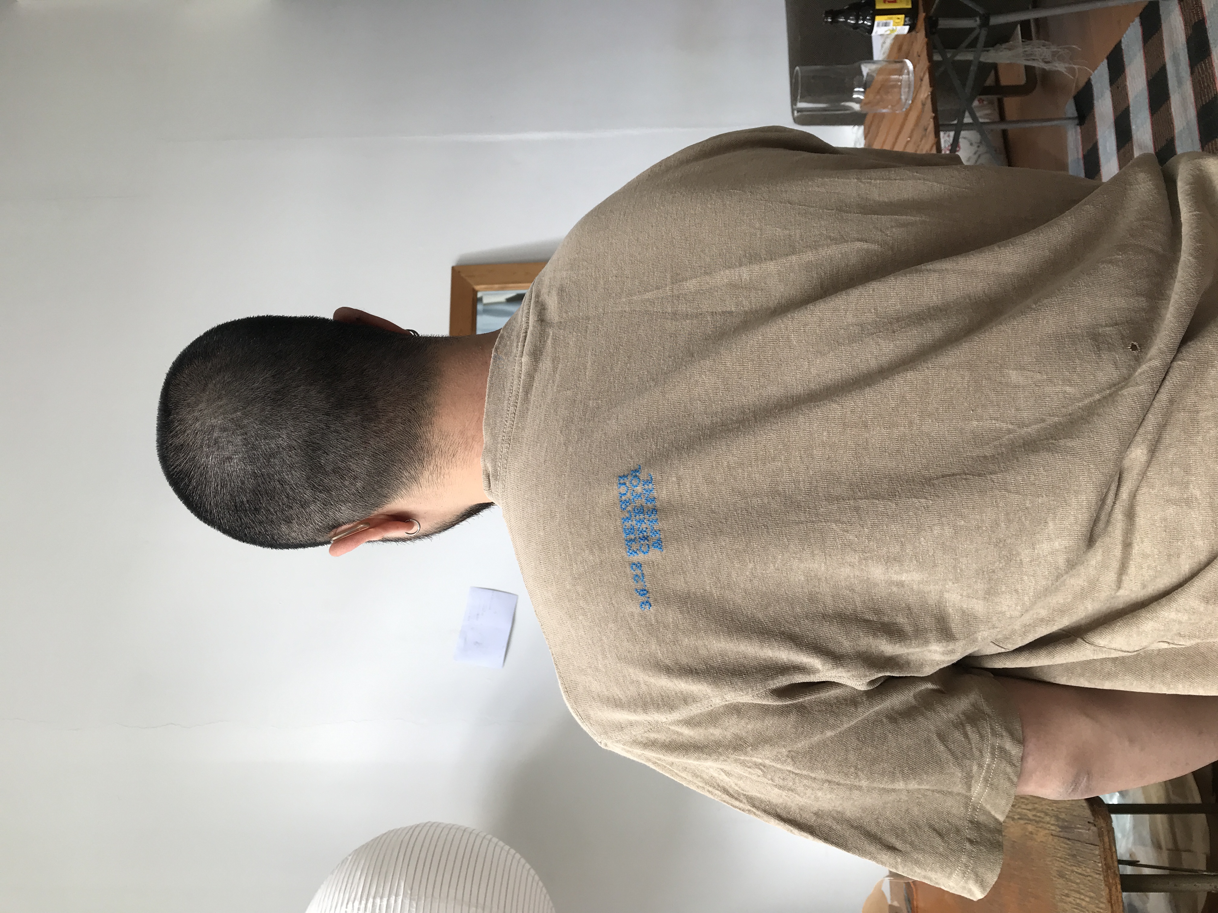 数年着古したTシャツの背面にコットンの糸で刺繍(デュプリケートステッチ)